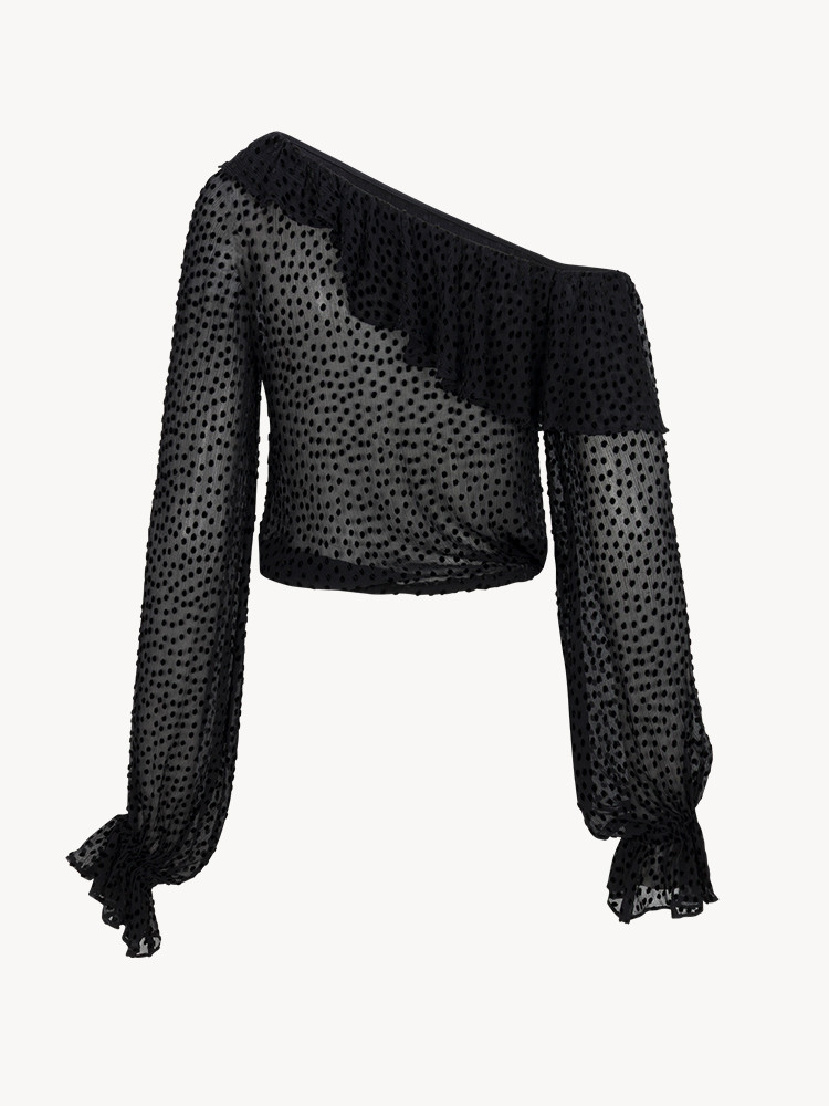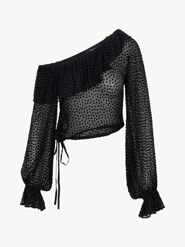 You always want that one piece in your wardrobe that can fall effortlessly off your shoulder - and the Corinne does just that. Her sheer velvet devoré dot fabric gives her the allure of her French namesake. She’s just sexy enough to pull off that perfect sheer-top moment.