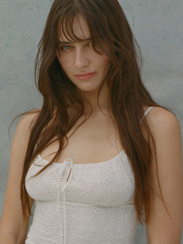 Claudia Schiffer: The Stella, reminiscent of Claudia in her blue denim and white Americana outfit. This creamy white silk broderie anglaise bustier will have you channelling a 90’s bombshell.